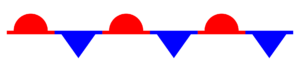 Poniższym symbolem oznacza się na mapach front: